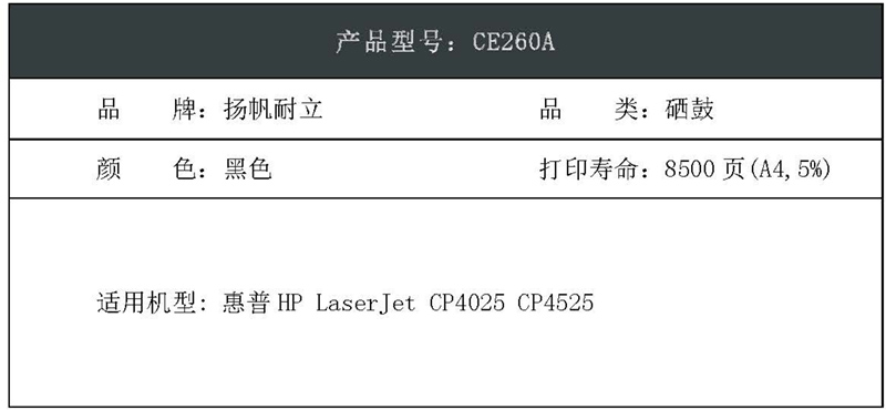 扬帆耐立(YFHC) CE260A 商专版 打印量约8500页 适用于惠普CP4025 硒鼓 (计价单位:只) 黑色