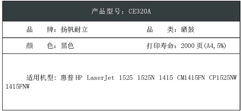 扬帆耐立(YFHC) CE320A 商专版 打印量约2000页 适用于HP128A/1525N等 硒鼓 1.00 只/支 (计价单位:支) 黑色