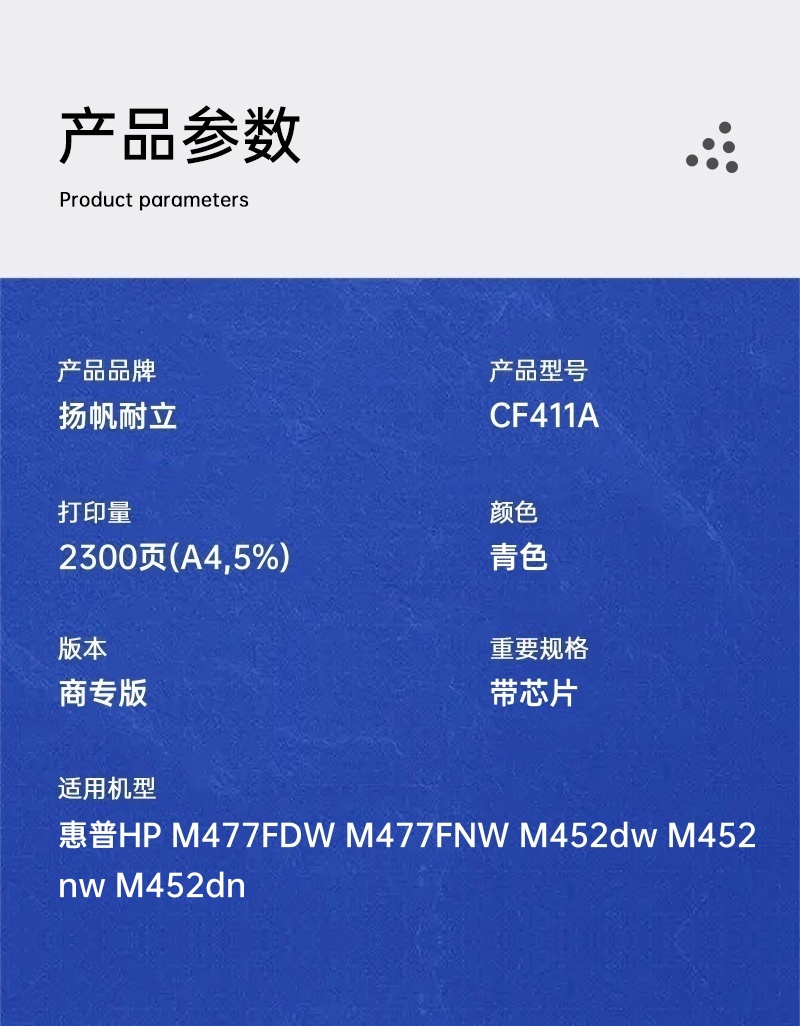 扬帆耐立(YFHC) CF411A(410A) 商专版 2300页 适用惠普 M477FDW 硒鼓 (计价单位:只) 兰色