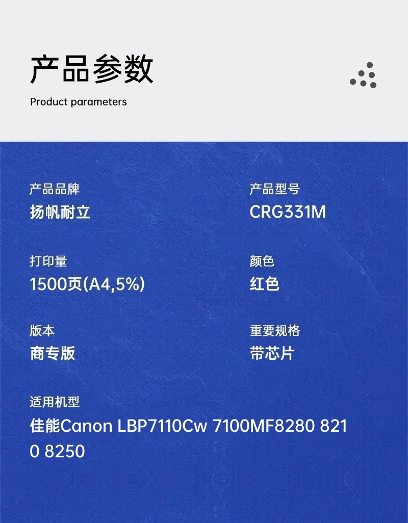 扬帆耐立(YFHC) CRG331 M 商专版 打印量约1800页 适用佳能LBP7110 硒鼓 1.00 只/支 (计价单位:支) 红色