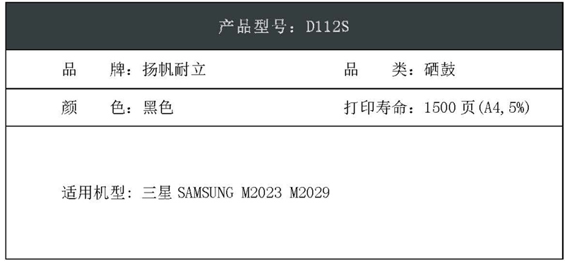 扬帆耐立(YFHC) SX-D112S 商专版 打印量约1500页 适用三星 MX M2023 M2029 硒鼓 (计价单位:只) 黑色