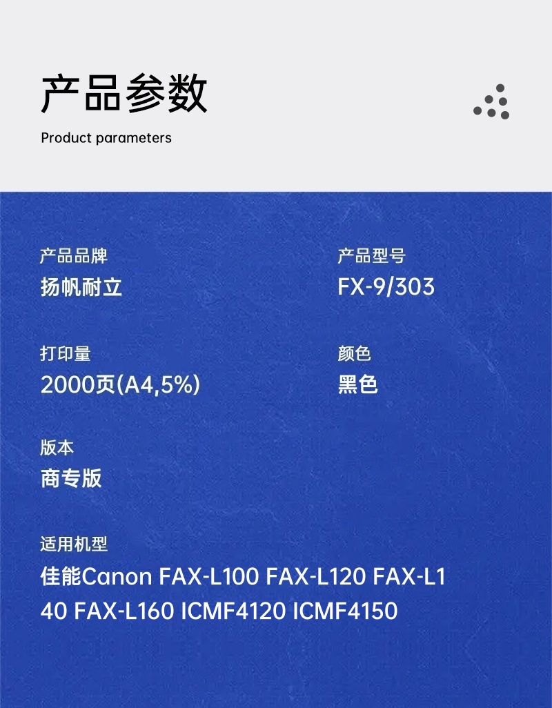 扬帆耐立(YFHC) CN-FX9/303 商专版 打印量约2300页 适用佳能FAX-L100 FAX-L120 硒鼓 1.00 只/支 (计价单位:支) 黑色