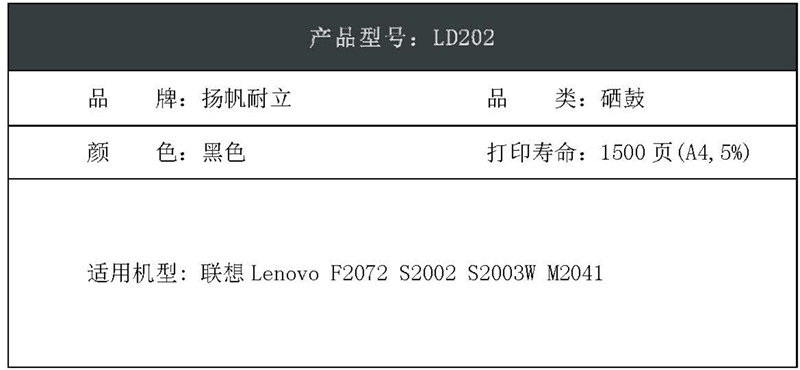 扬帆耐立(YFHC) LD202 商专版 打印量约1500页 适用联想LJ F2072等 硒鼓 1.00 只/支 (计价单位:支) 黑色