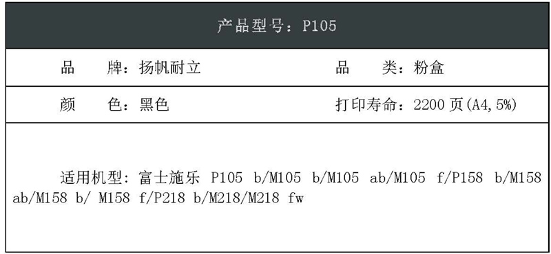 扬帆耐立(YFHC) YFHC-M105/M158/P105/P158-F 2200页 适用P105 粉盒 1.00 只/个 (计价单位:个) 黑色