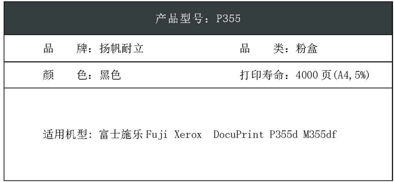 扬帆耐立(YFHC) P355 4000页 适用富士施乐Fuji Xerox DocuPrint P355d 墨粉盒 1.00 只/支 (计价单位:支) 黑色