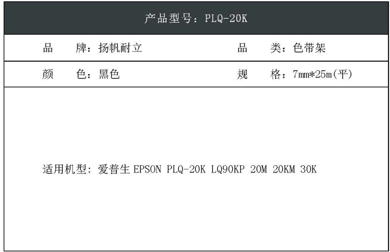扬帆耐立(YFHC) YFHC-PLQ20-Z-J 7mm*25m 适用爱普生PLQ-20K 色带架 1.00 只/个 (计价单位:个) 黑色
