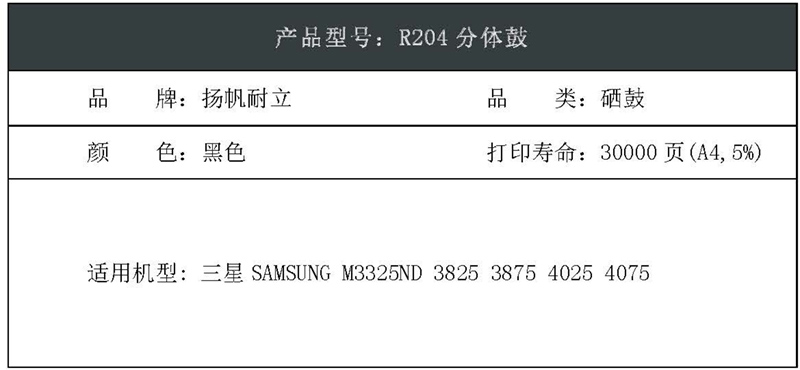 扬帆耐立(YFHC) R204 商专版 打印量约12000页 适用三星M3325ND 3825 3875 4025 4075 硒鼓 1.00 只/支 (计价单位:支) 黑色