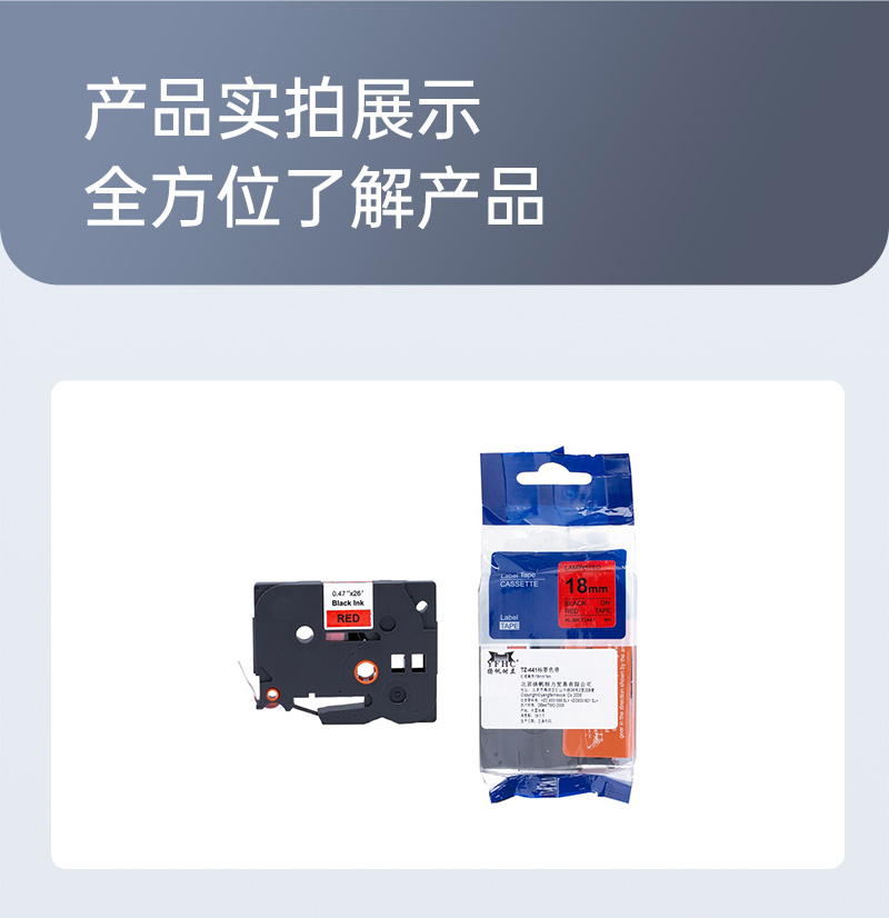 扬帆耐立(YFHC) YFHC-TZ-441 企业版 打印量18mm*8m 适用机型:兄弟BrotherPT-D200 标签色带 1.00 个/盒 (计价单位:盒) 红底黑字
