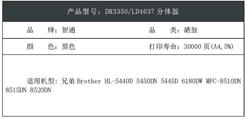 智通(ZT) DR3350/LD4637 打印量30000页 适用机型兄弟Brother HL-5440D 5450DN 5445D 硒鼓 1.00 只/支 (计价单位:支) 黑色
