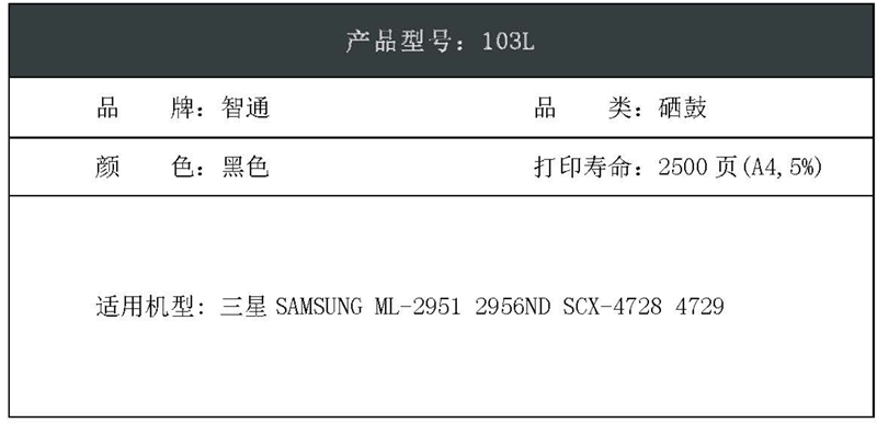 智通(ZT) ZT-103L 2500页 适用三星ML-2951 2956ND 硒鼓 1.00 只/个 (计价单位:个) 黑色