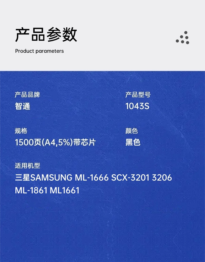 智通(ZT) 1043S 带芯片 1500页 适用三星SAMSUNG ML-1666 SCX-3201 3206 ML-1861 ML1661 硒鼓 1.00 只/支 (计价单位:支) 黑色