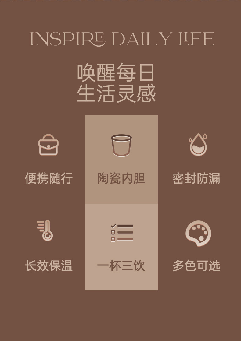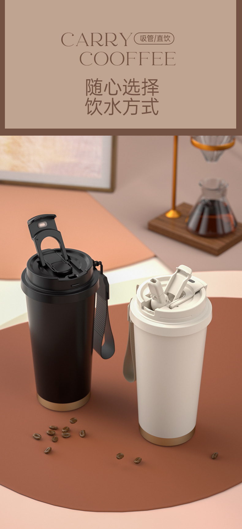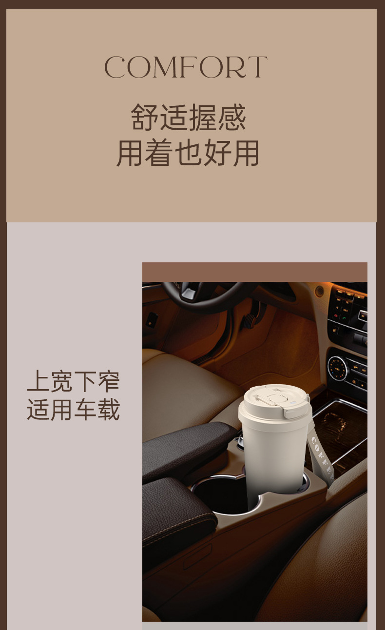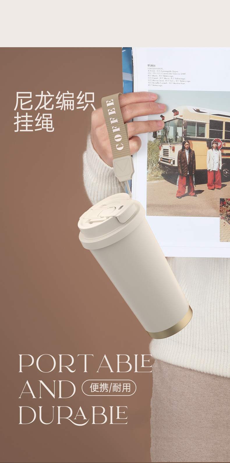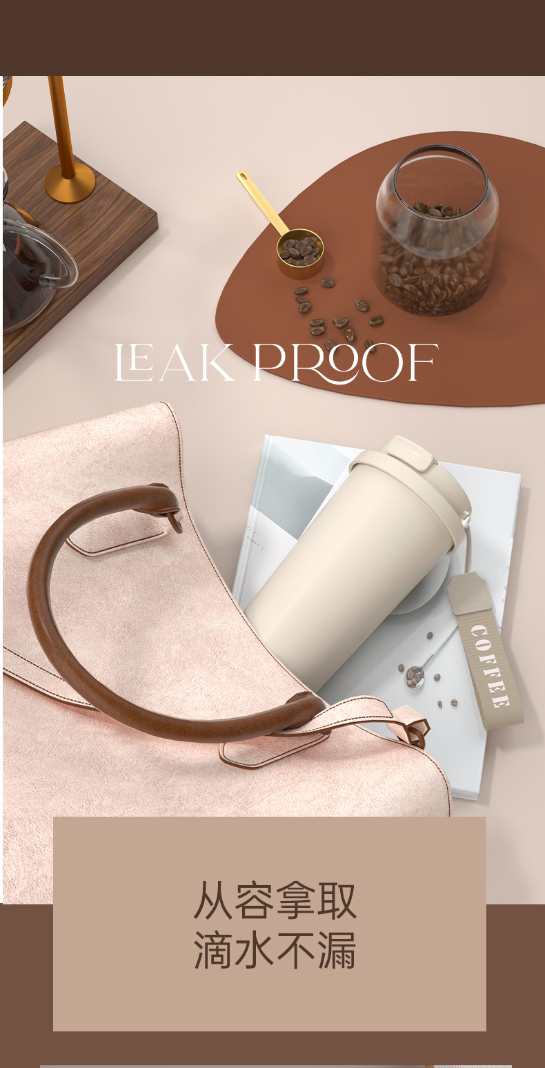 上亨时尚简约咖啡杯316不锈钢双层内胆陶瓷涂层尼龙挂绳便携 SHZH-CFB016 530ml/个 白色