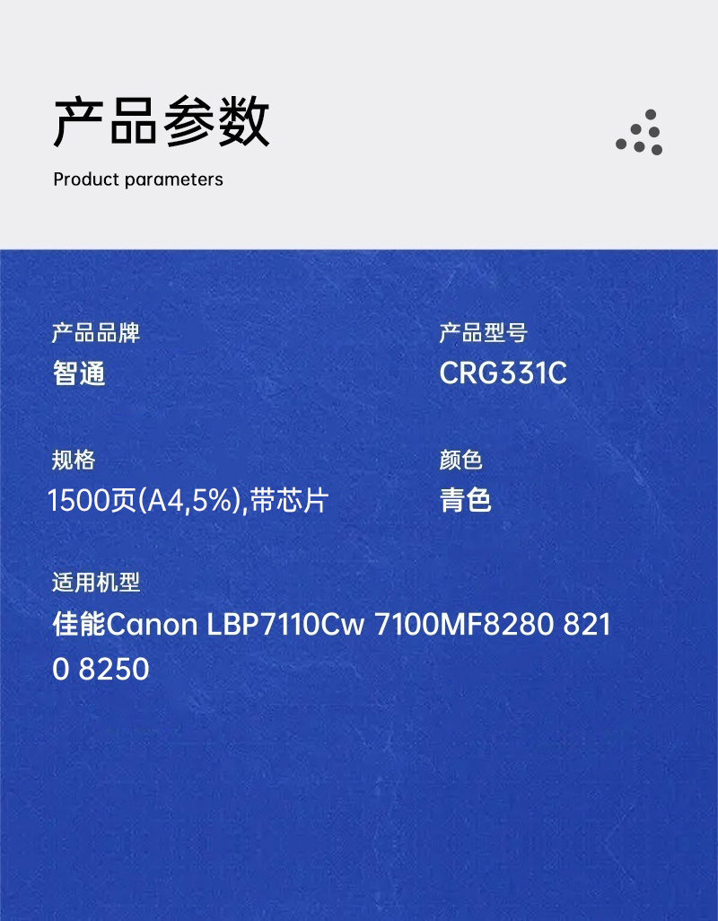 智通(ZT) ZT-331-C 1800页 适用佳能Canon LBP7110Cw 7100MF8280 8210 硒鼓 1.00 只/支 (计价单位:支) 兰色
