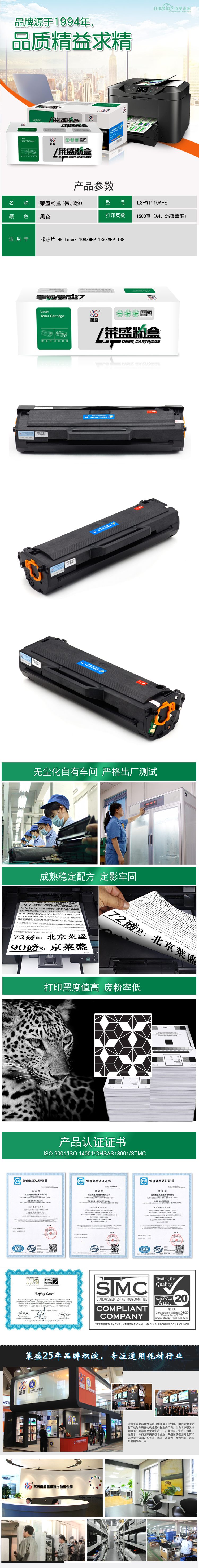 莱盛 LS-W1110A-E 激光打印机粉盒易加粉 全新 有芯片 1.5K 黑色