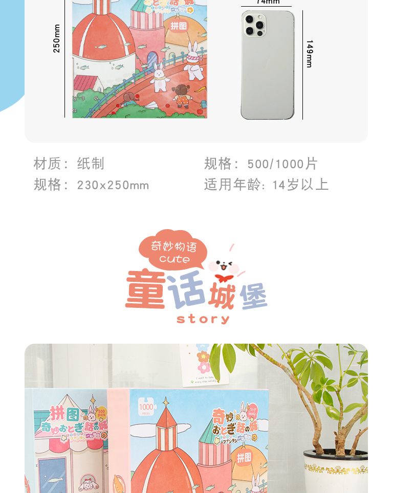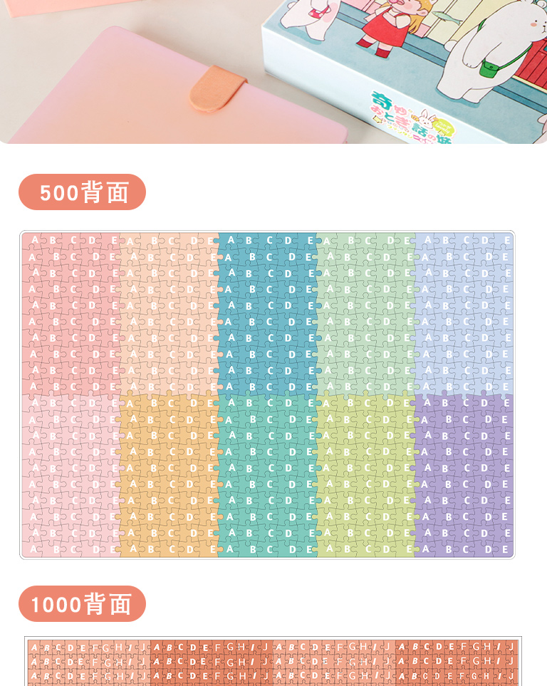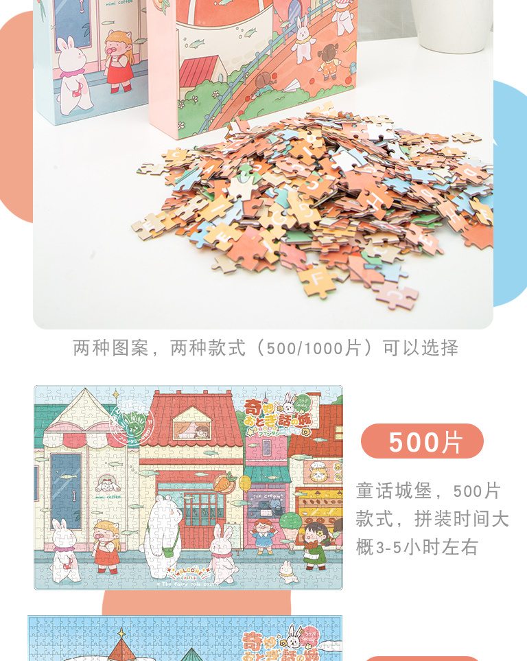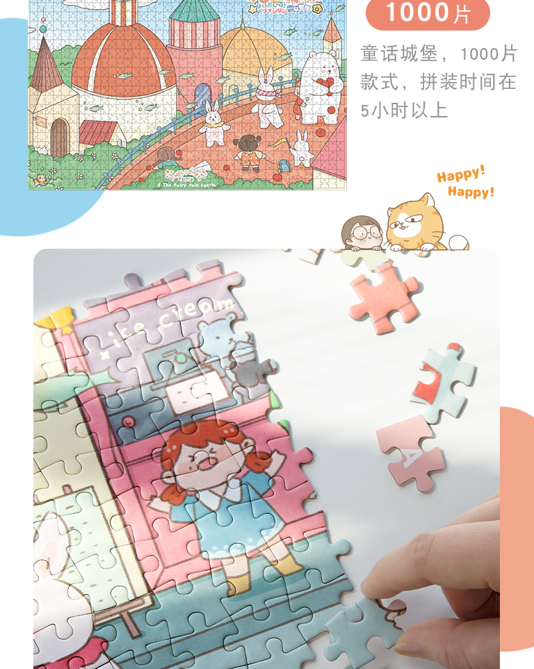 三年二班1000片纸质盒装童话城堡益智拼图小男孩学生课后娱乐减压玩具小女孩生日礼物/盒 混色