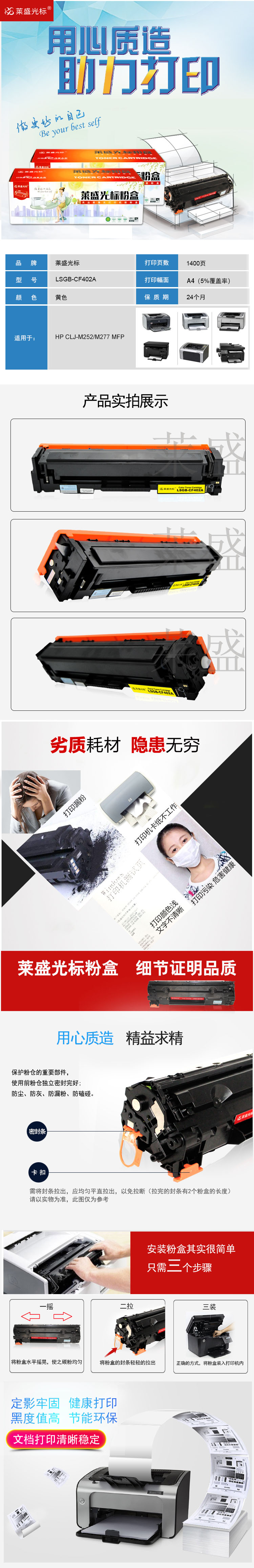 莱盛光标 LSGB-CF402A 激光打印机粉盒 全新 有芯片 1.4K 黄色