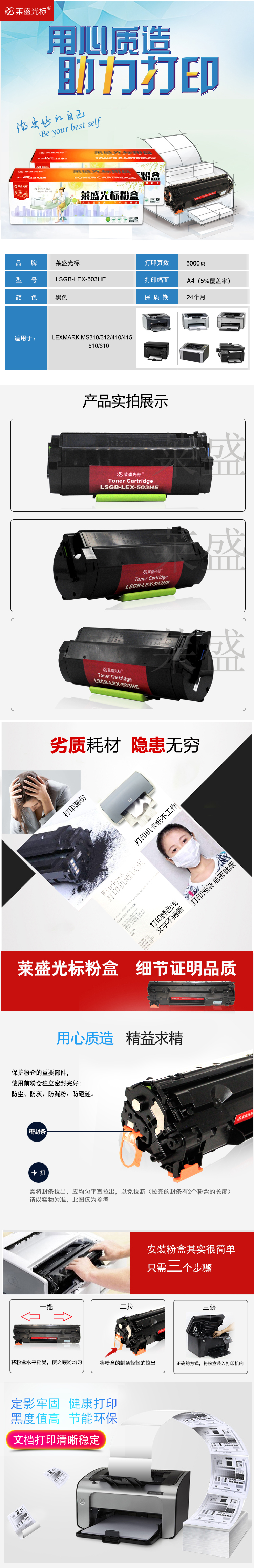 莱盛光标 LSGB-LEX-503HE 激光打印机粉仓 全新 有芯片 5K 黑色