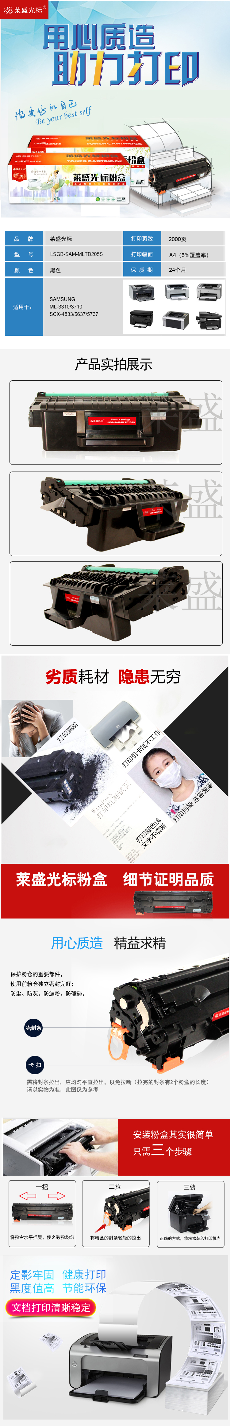 莱盛光标 LSGB-SAM-MLTD205S 激光打印机粉盒 全新 有芯片 2K 黑色