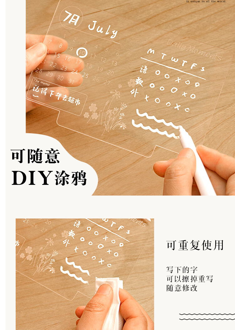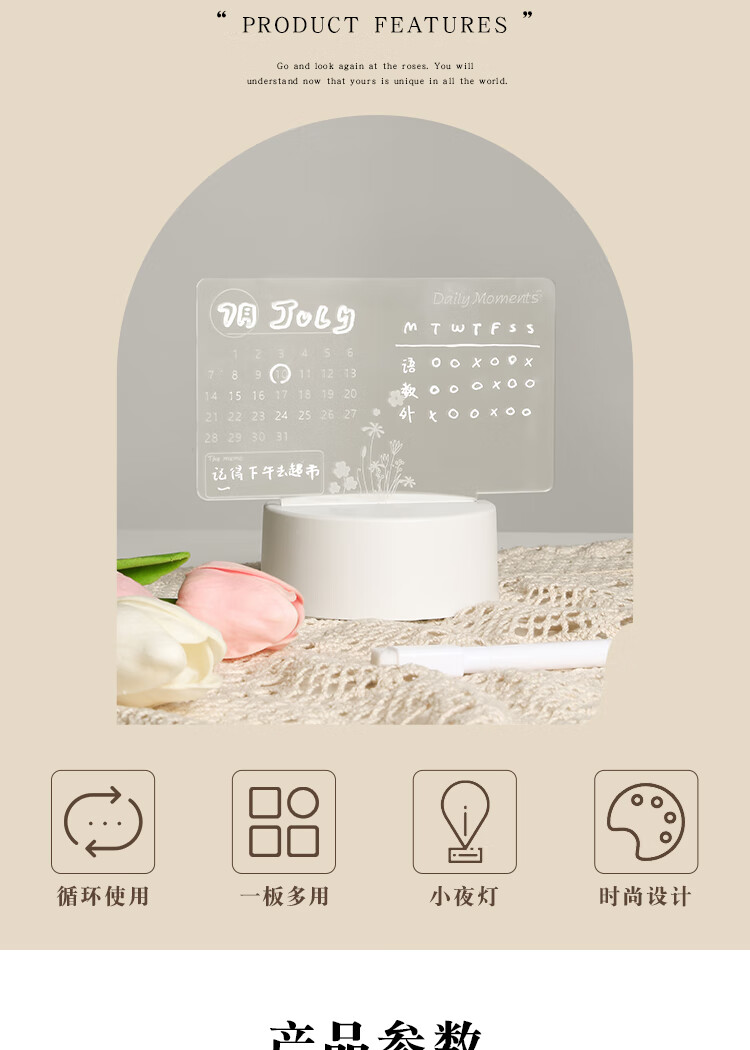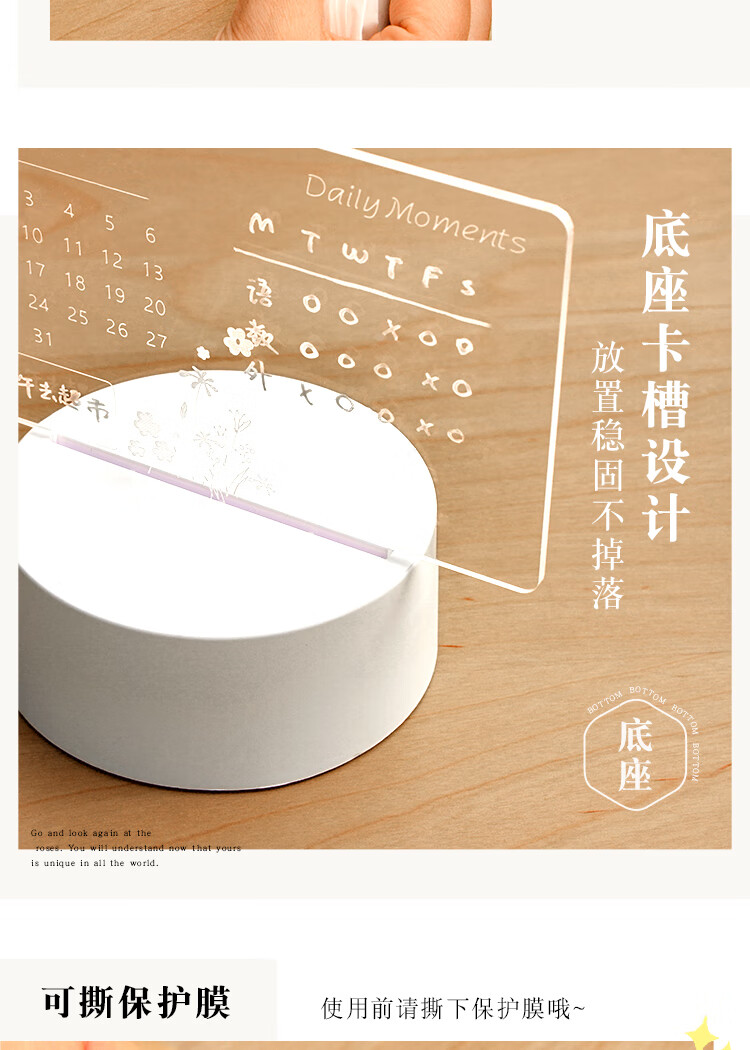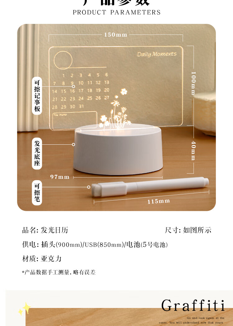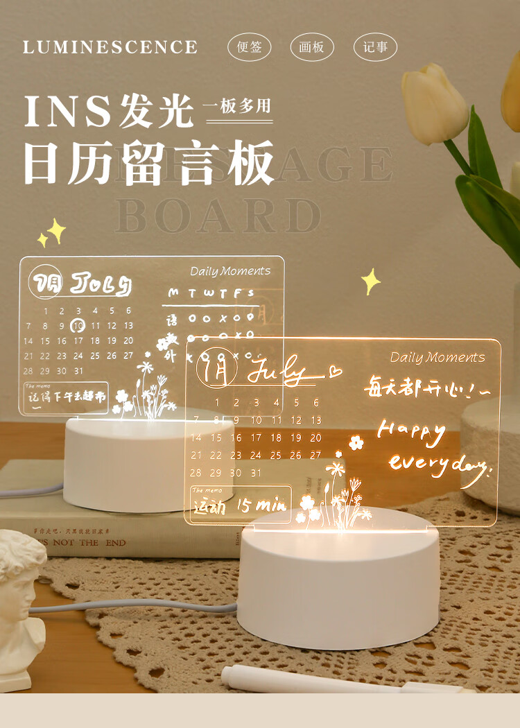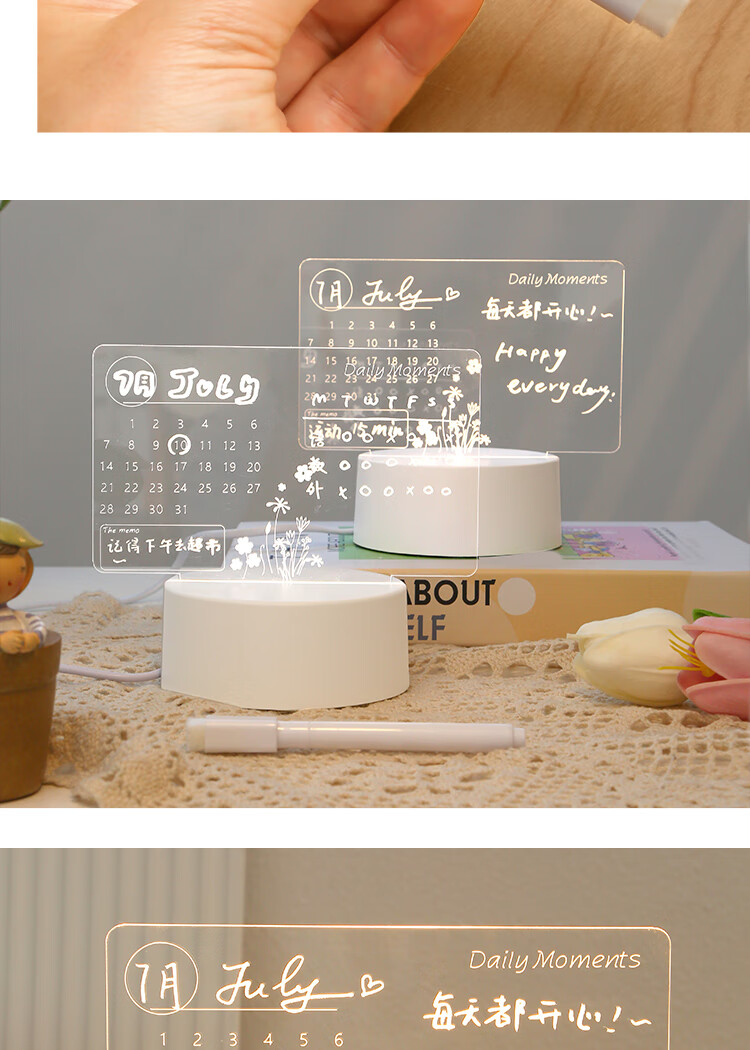 三年二班亚克力倒计时发光桌面台历摆件 学生考研自律打卡可擦记事板备忘录生日礼物 USB款三色/个 USB三色+日历灯片+笔