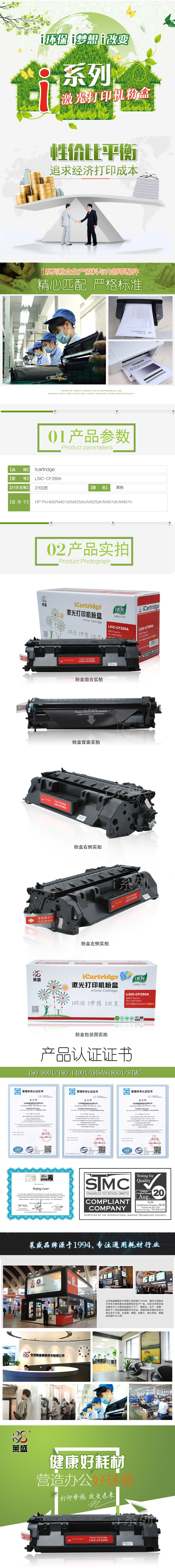 莱盛I系列 LSIC-CF280A 粉盒 全新 有芯片 2.7K 黑色