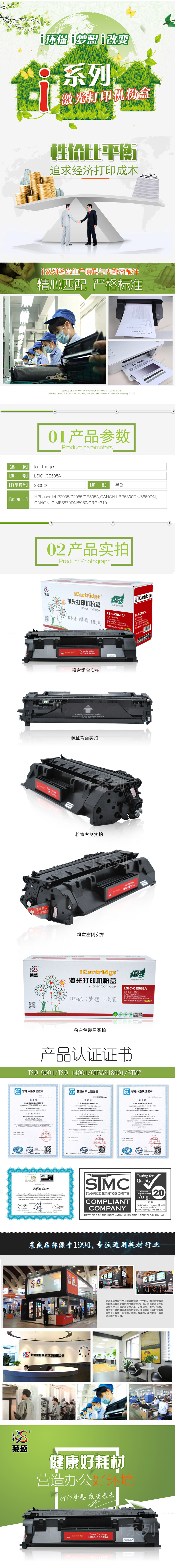 莱盛I系列 LSIC-CE505A 粉盒 全新 有芯片 2.3K 黑色