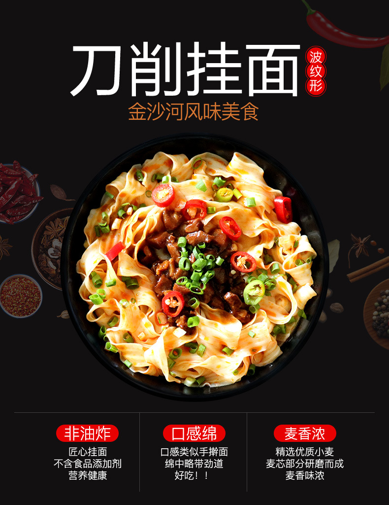 金沙河面条 刀削挂面 500g*5包/5斤 10mm大宽刀削面宽面条油泼面 黑色