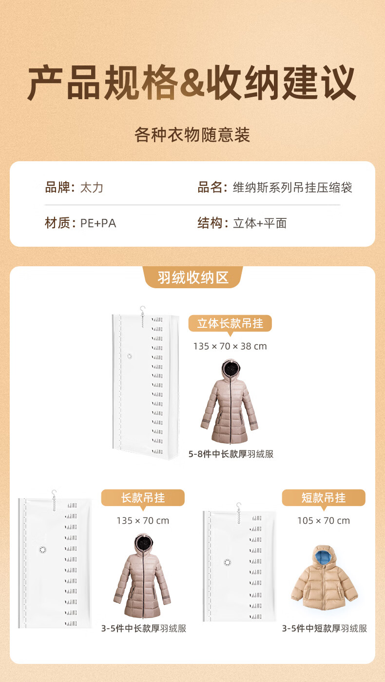 太力挂式真空收纳压缩袋AY842 长款2个【135*70cm】 白色