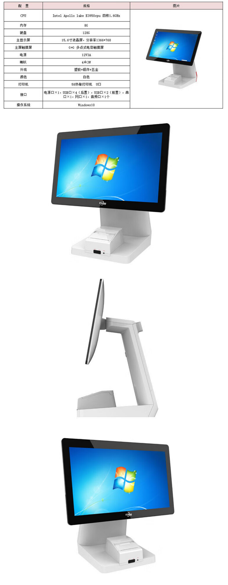 易捷通K590单屏触摸一体机 15.6英寸 白色