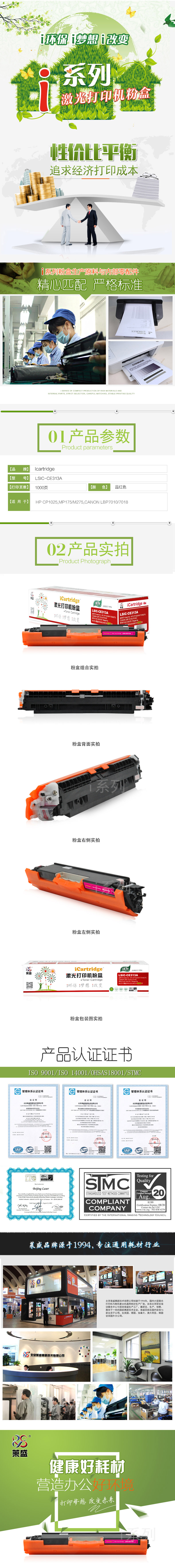 莱盛I系列 LSIC-CE313A 粉仓 全新 有芯片 1K 品红色