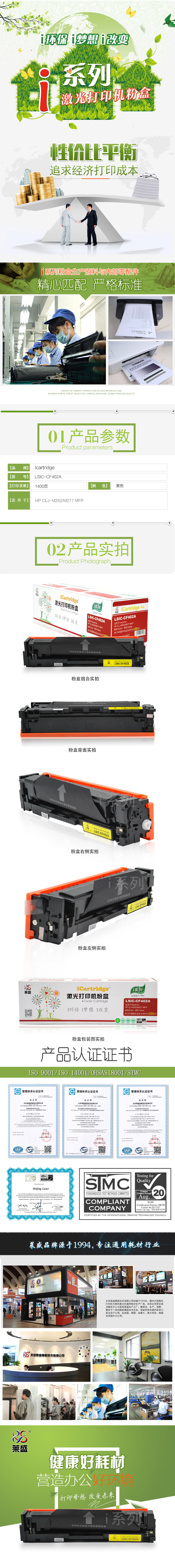 莱盛I系列 LSIC-CF402A 粉盒 全新 有芯片 1.4K 黄色