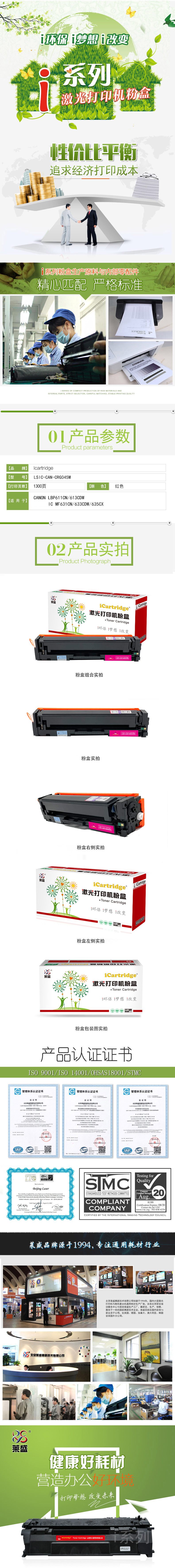莱盛I系列 LSIC-CAN-CRG045M 粉盒 全新 有芯片 1.3K 品红色