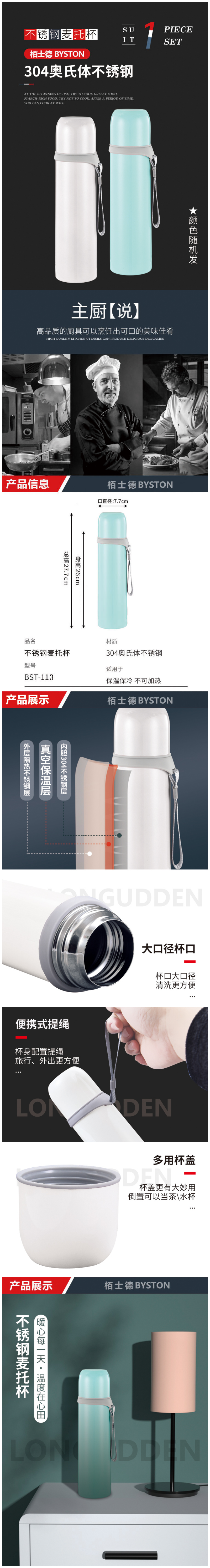 栢士德BYSTON 麦托不锈钢保温杯 BST-113 500ML 本白色