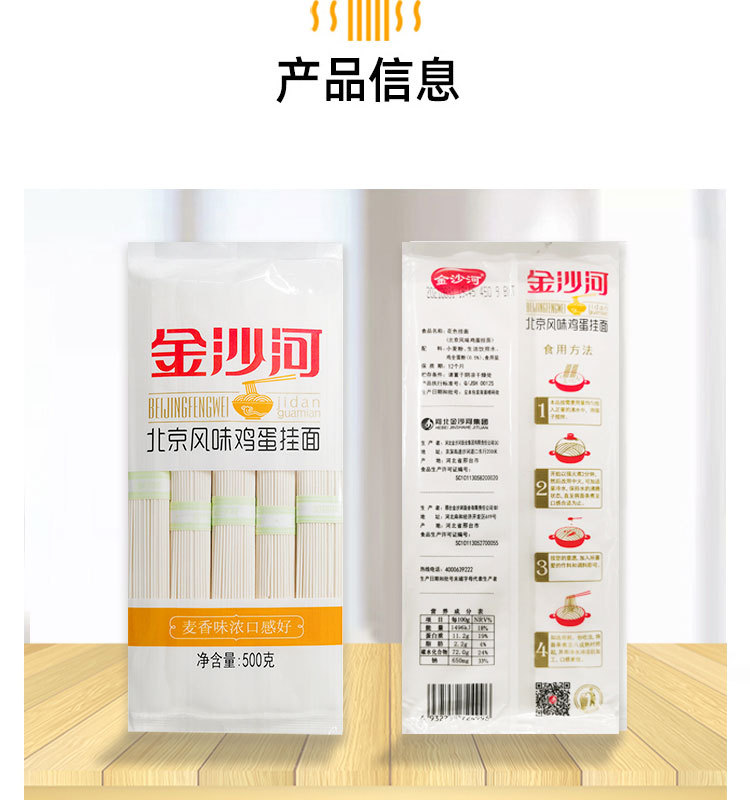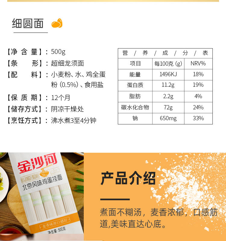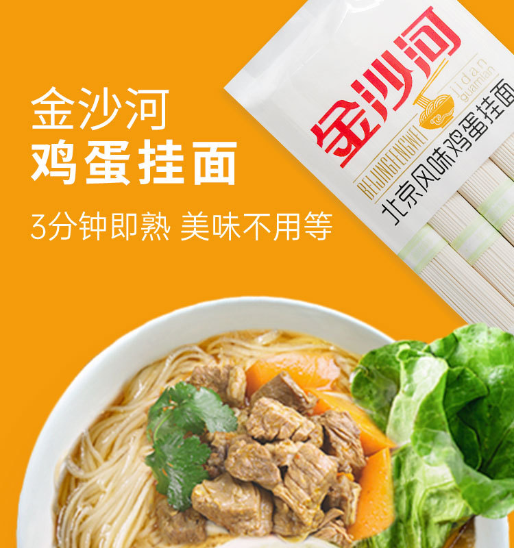 金沙河面条 北京风味鸡蛋挂面 500g*5包/5斤 超细圆龙须面 白色