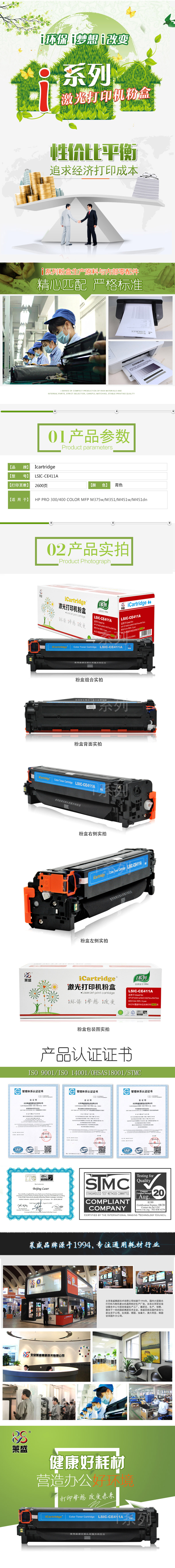 莱盛I系列 LSIC-CE411A 粉盒 全新 有芯片 2.6K 青色