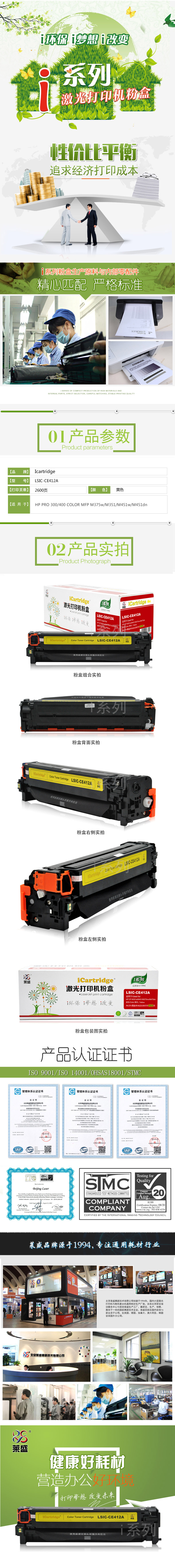 莱盛I系列 LSIC-CE412A 粉盒 全新 有芯片 2.6K 黄色