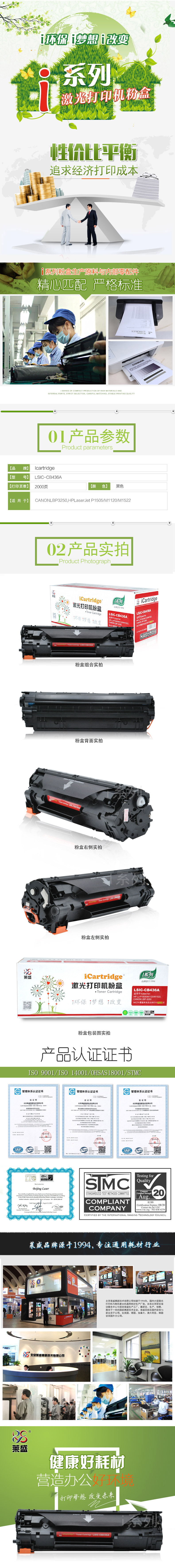 莱盛I系列 LSIC-CB436A 粉盒 全新 有芯片 2K 黑色
