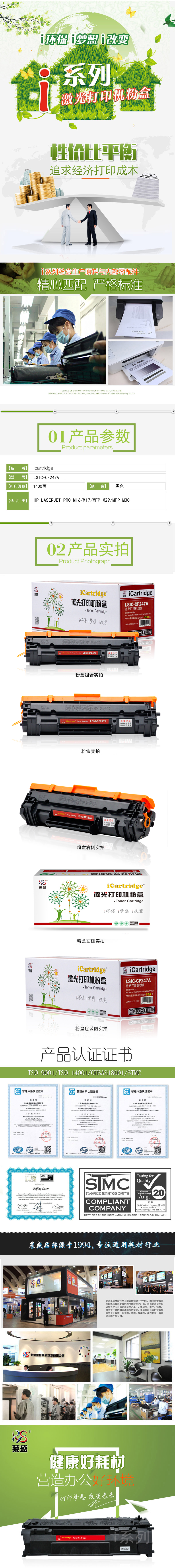 莱盛I系列 LSIC-CF247A 粉盒 全新 有芯片 1.4K 黑色