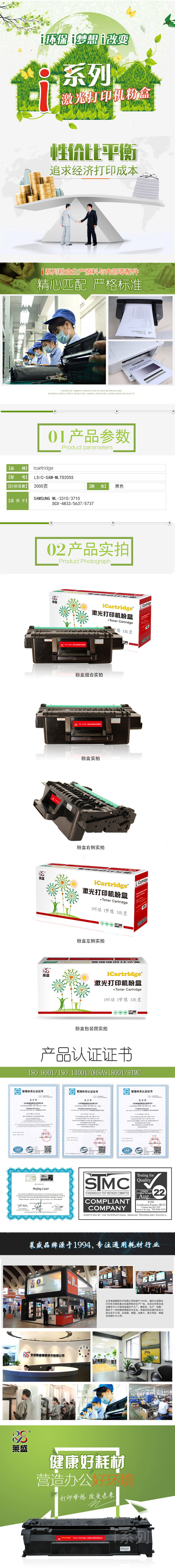 莱盛I系列 LSIC-SAM-MLTD205S 粉盒 全新 有芯片 2K 黑色