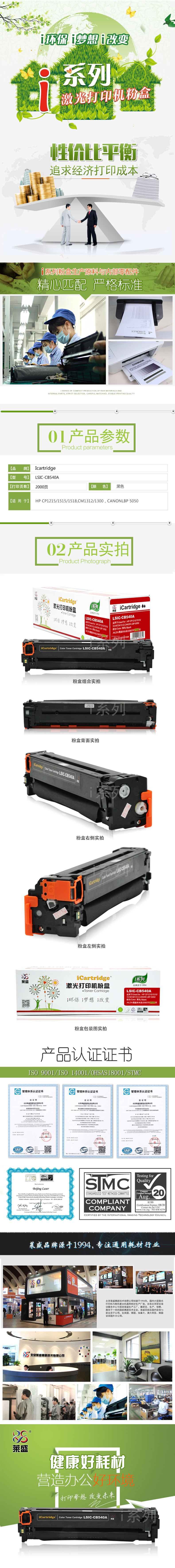 莱盛I系列 LSIC-CB540A 粉盒 全新 有芯片 2K 黑色