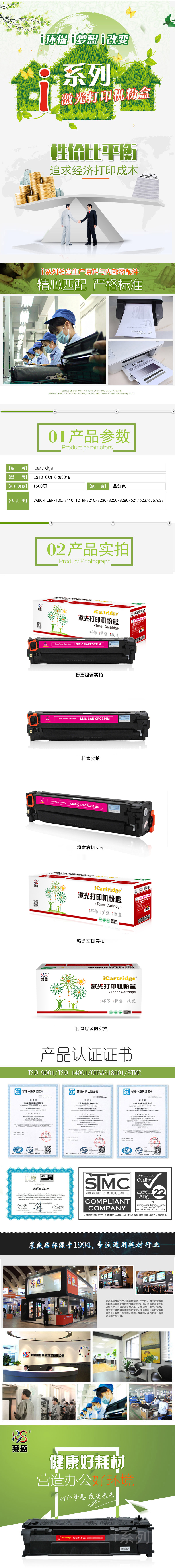 莱盛I系列 LSIC-CAN-CRG331M 粉盒 全新 有芯片 1.5K 品红色