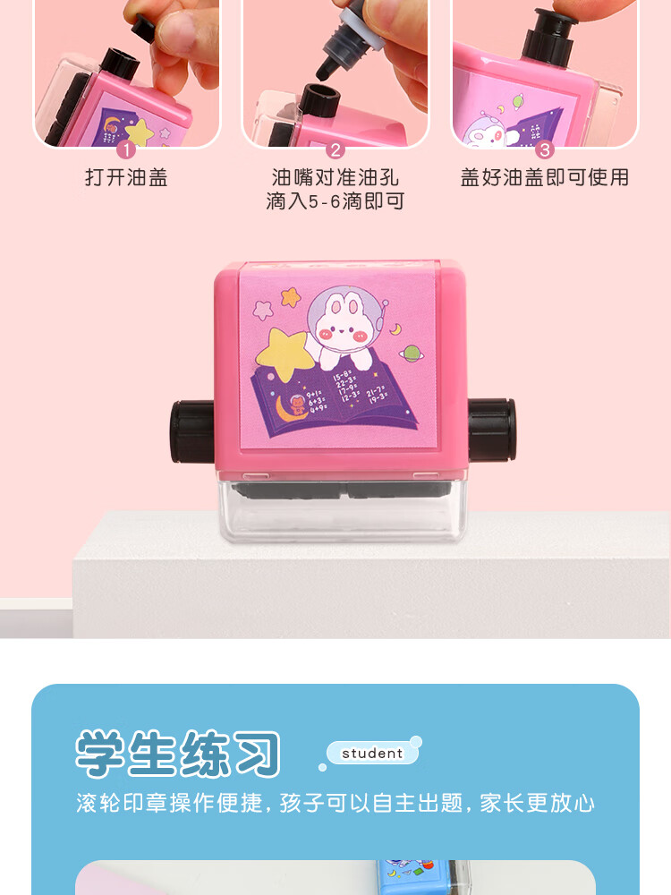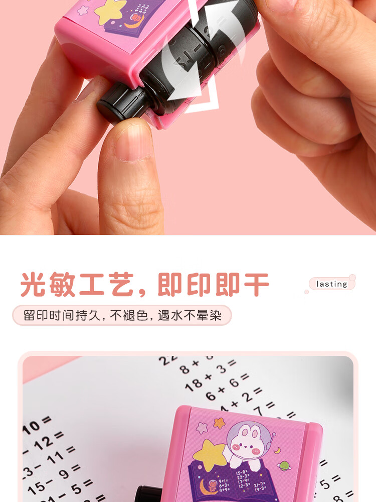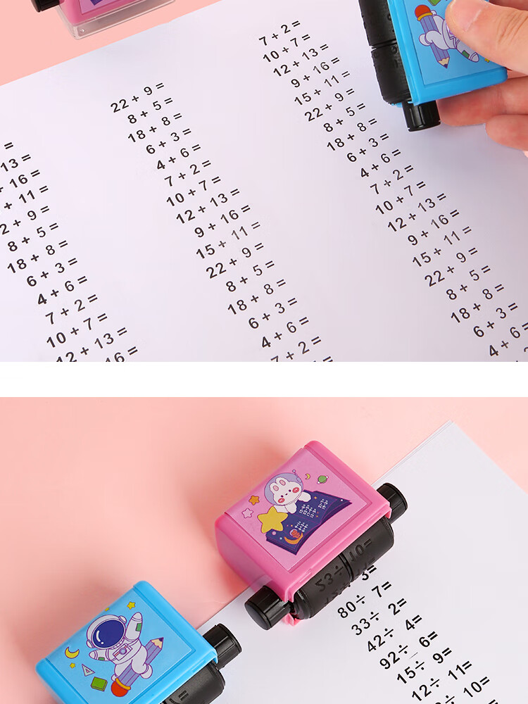 三年二班 加减乘除100以内数学算术题滚动式印章题小学生随机出题算数神器快速记忆口算 粉色除法套装