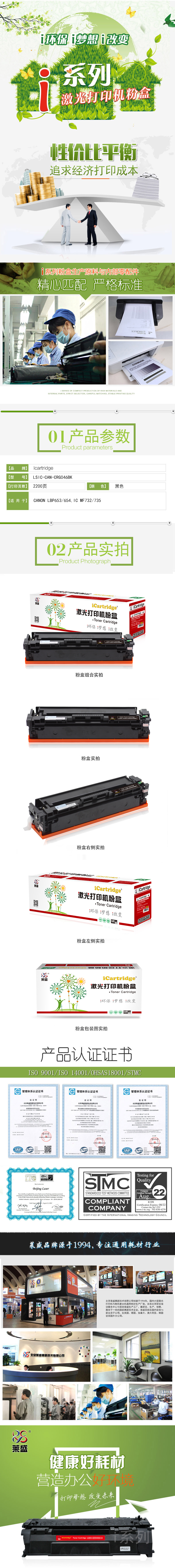 莱盛I系列 LSIC-CAN-CRG046BK 粉盒 全新 有芯片 2.2K 黑色