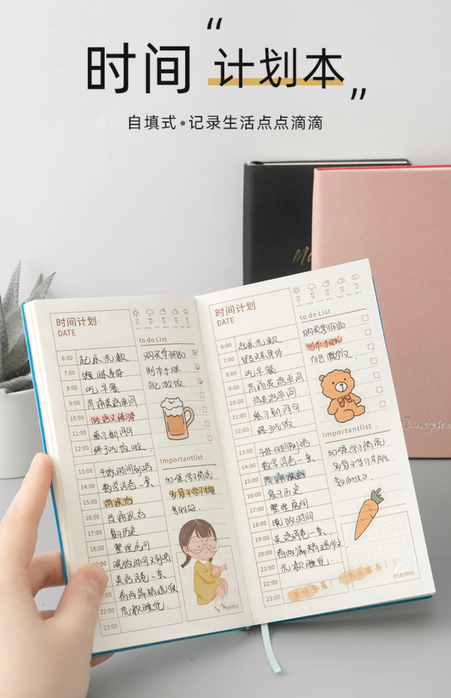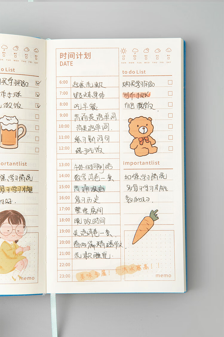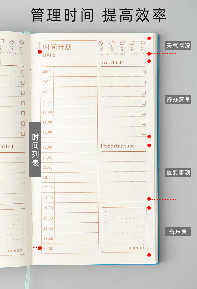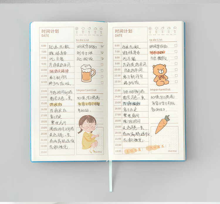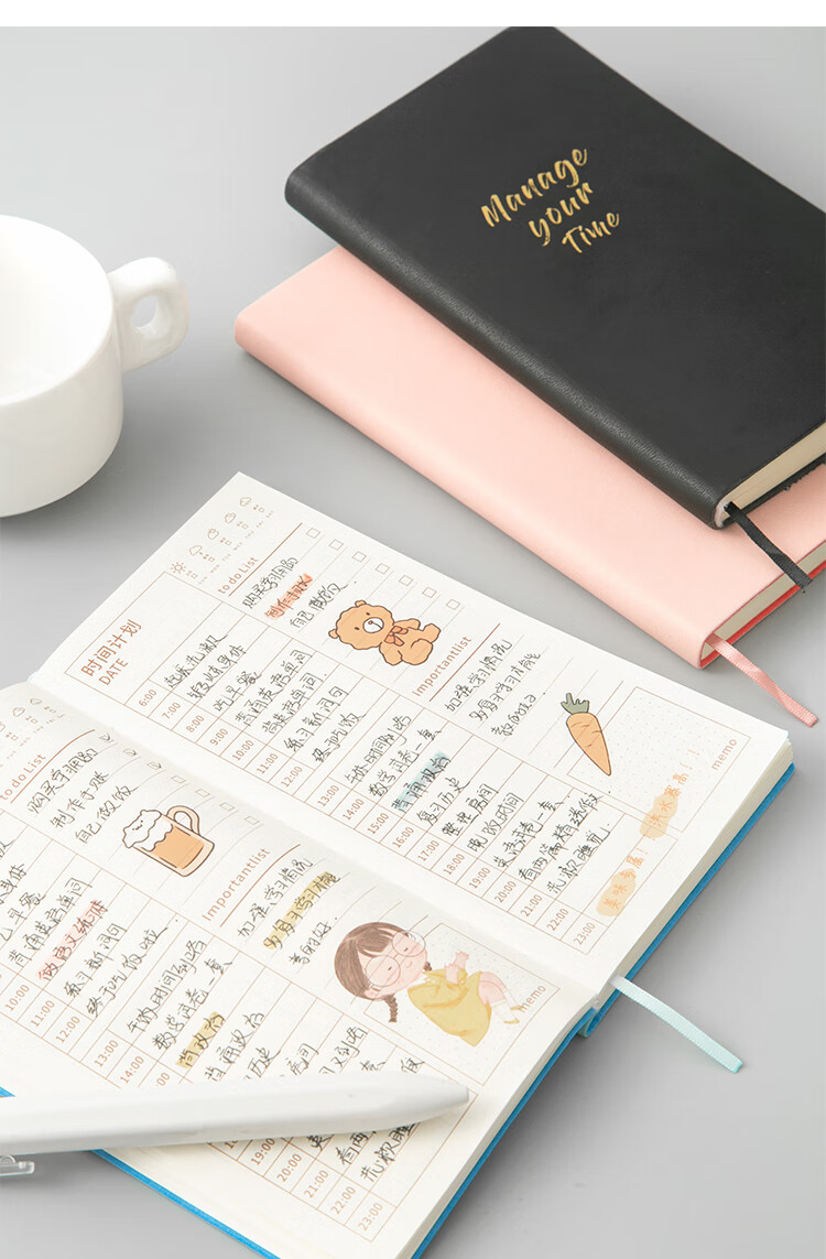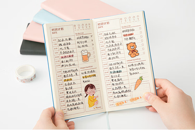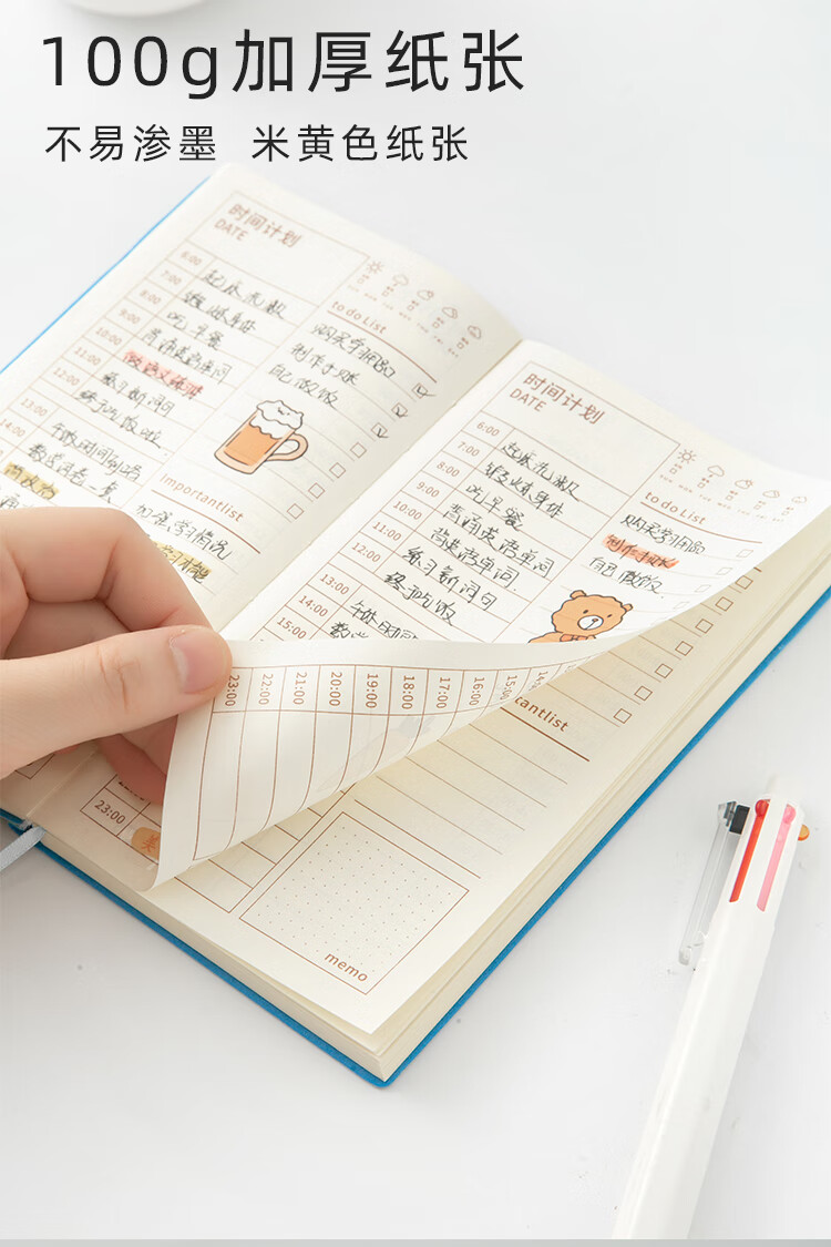 三年二班 365天每日计划本时间管理日程本笔记本本子 随身便携小学生日程规划本自律学习考研记事本 图片色