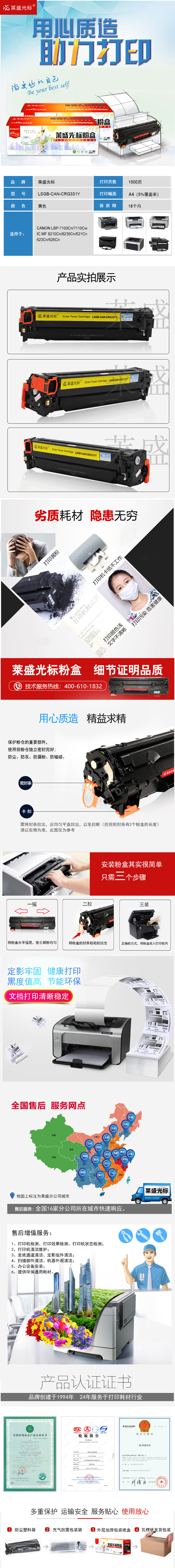 莱盛光标 LSGB-CAN-CRG331Y 激光打印机粉盒 全新 有芯片 1.5K 黄色