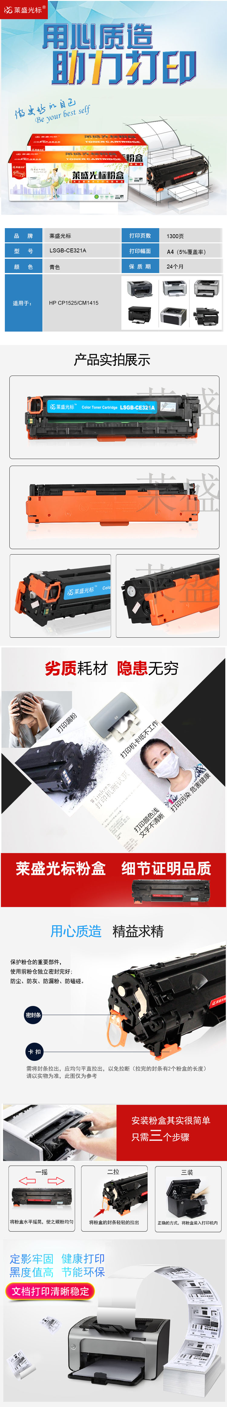 莱盛光标 LSGB-CE321A 打印量约1300页 适用于HP CP1525等 粉盒 1.00 只/支 (计价单位:支) 青色