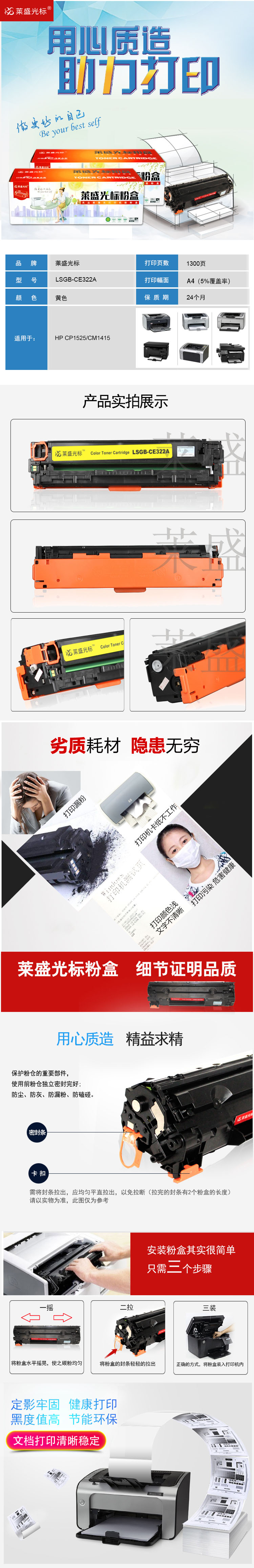 莱盛光标 LSGB-CE322A 打印量约1300页 适用于HP CP1525等 硒鼓 1.00 只/支 (计价单位:支) 黄色