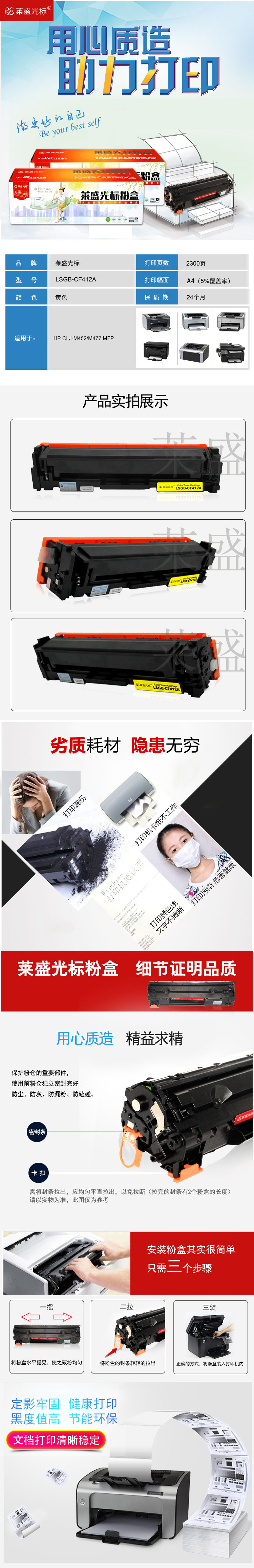 莱盛光标 LSGB-CF412A 打印量约2300页 适用于HP CLJ-M452等 粉盒 1.00 只/支 (计价单位:支) 黄色