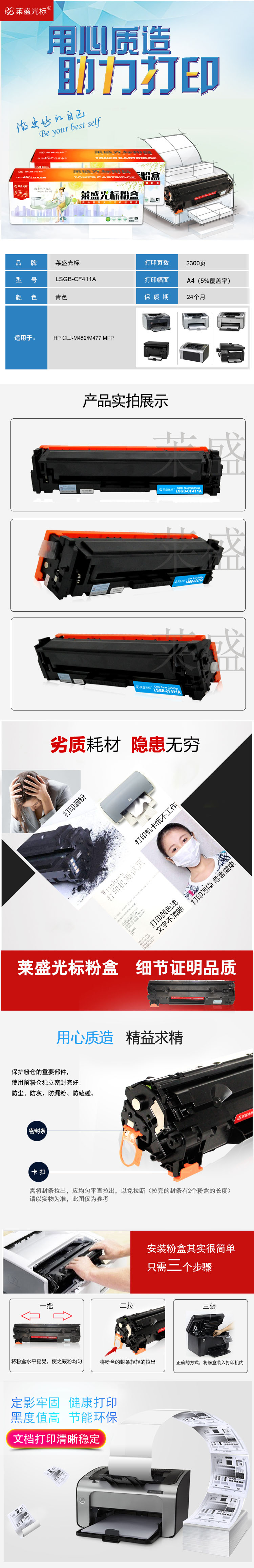 莱盛光标 LSGB-CF411A 激光打印机粉盒 全新 有芯片 2.3K 12支/箱 青色