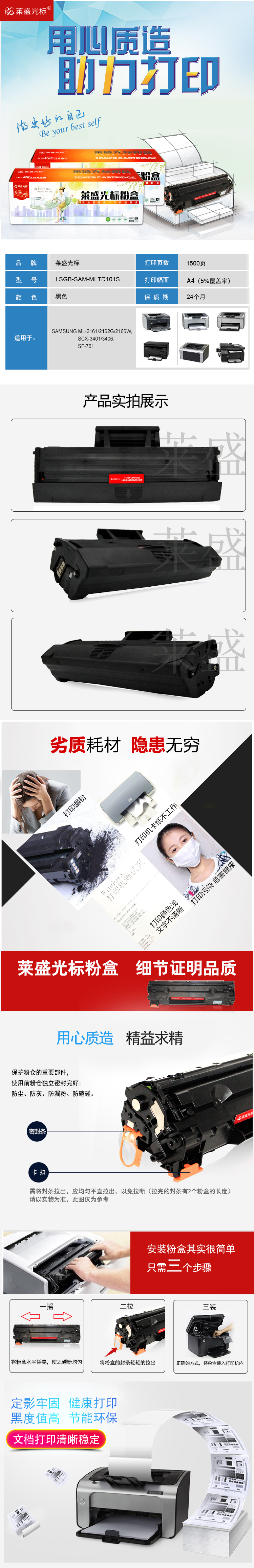 莱盛光标 LSGB-SAM-MLTD101S 打印量约1500页 粉盒 1.00 只/支 (计价单位:支) 黑色