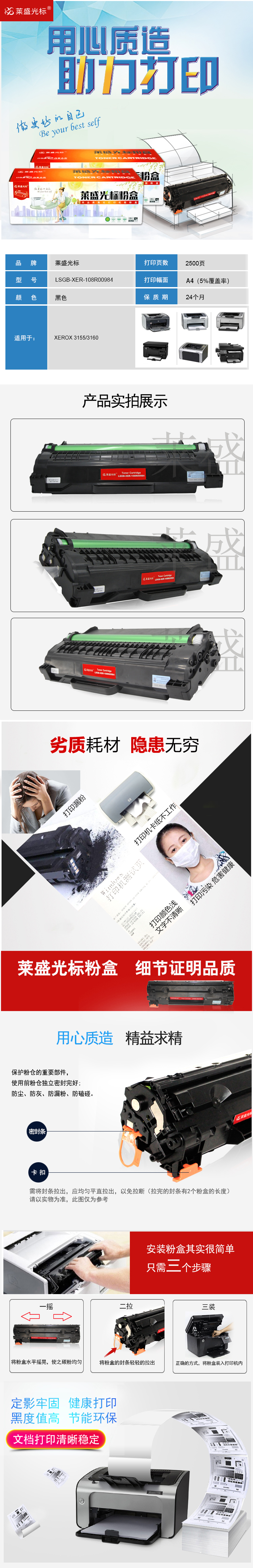 莱盛光标 LSGB-XER-108R00984 激光打印机粉盒 全新 有芯片 2.5K 8支/箱 黑色